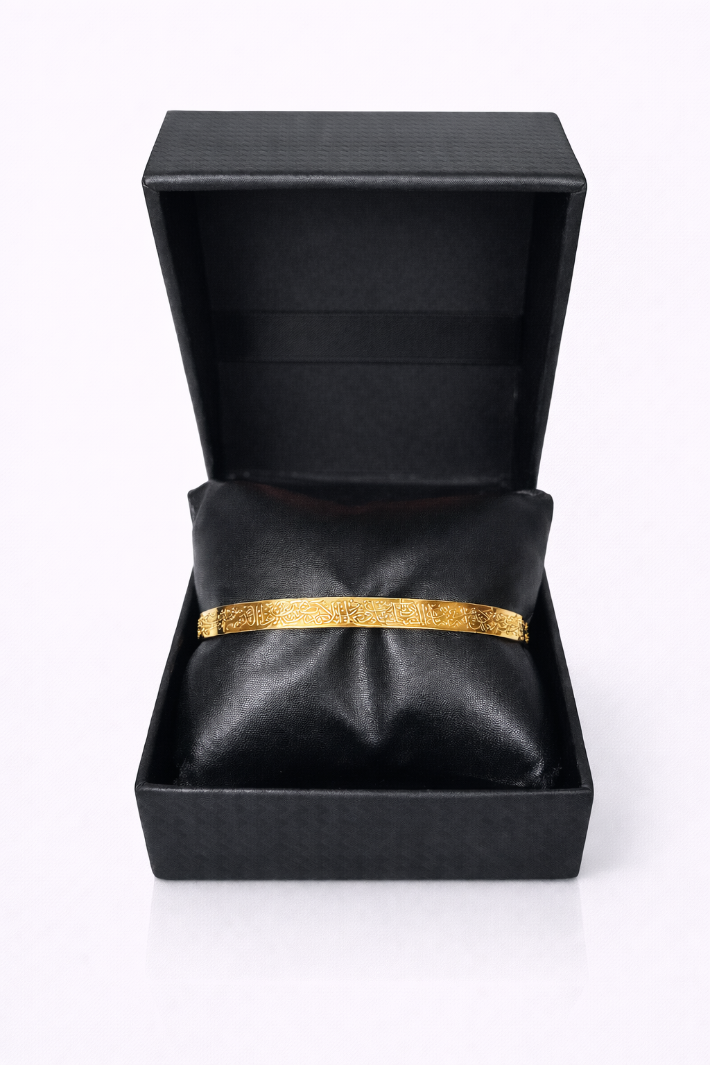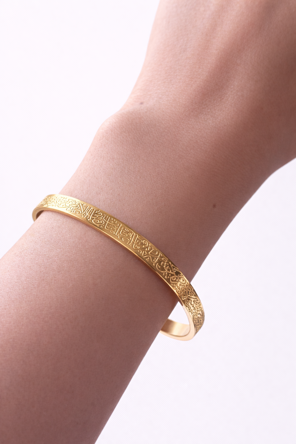 Its polished gold finish adds a warm, sophisticated touch, while the detailed engraving gives the bracelet a unique and meaningful character. Lightweight, comfortable, and adjustable, it is designed to fit effortlessly on the wrist.