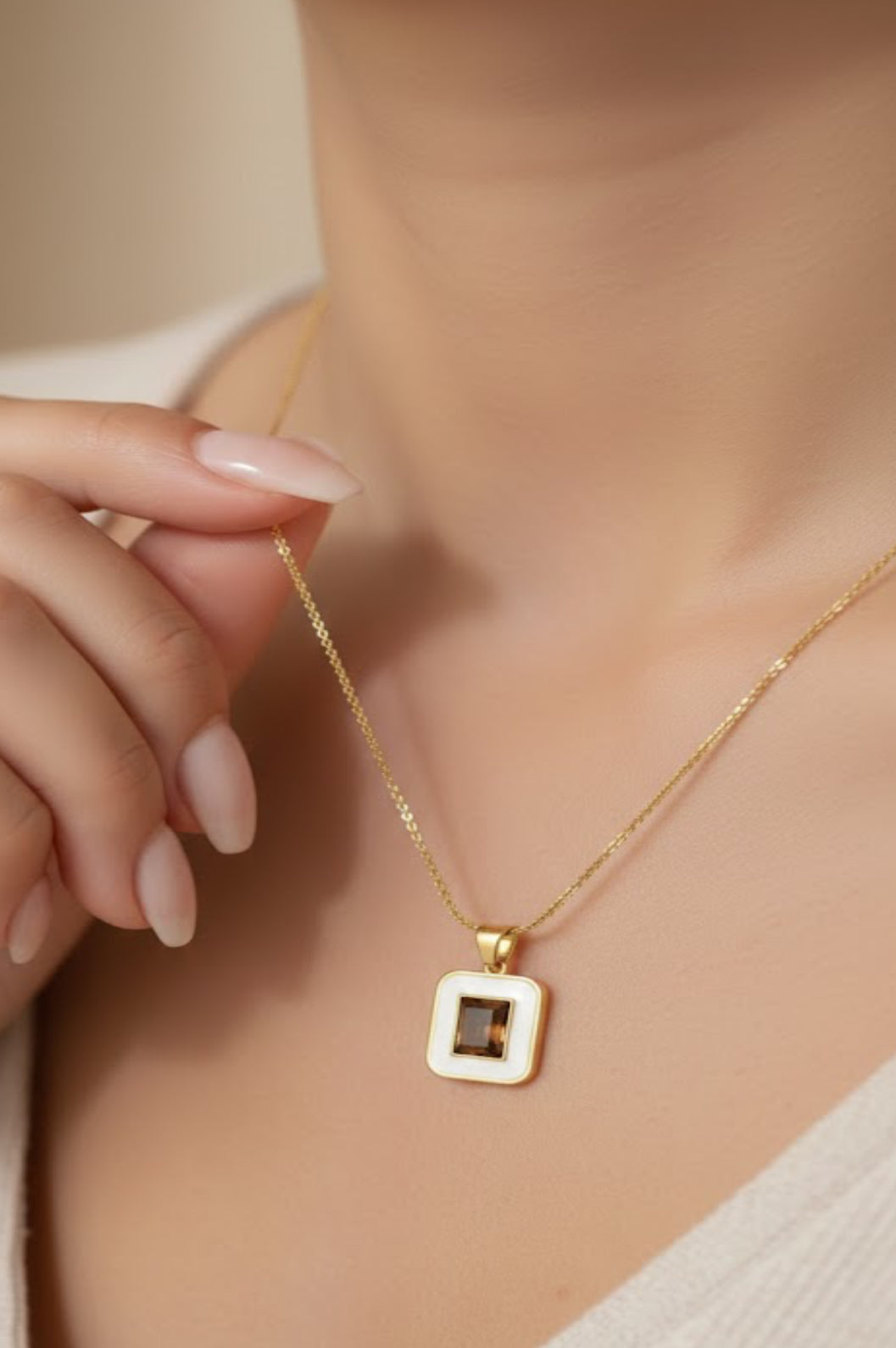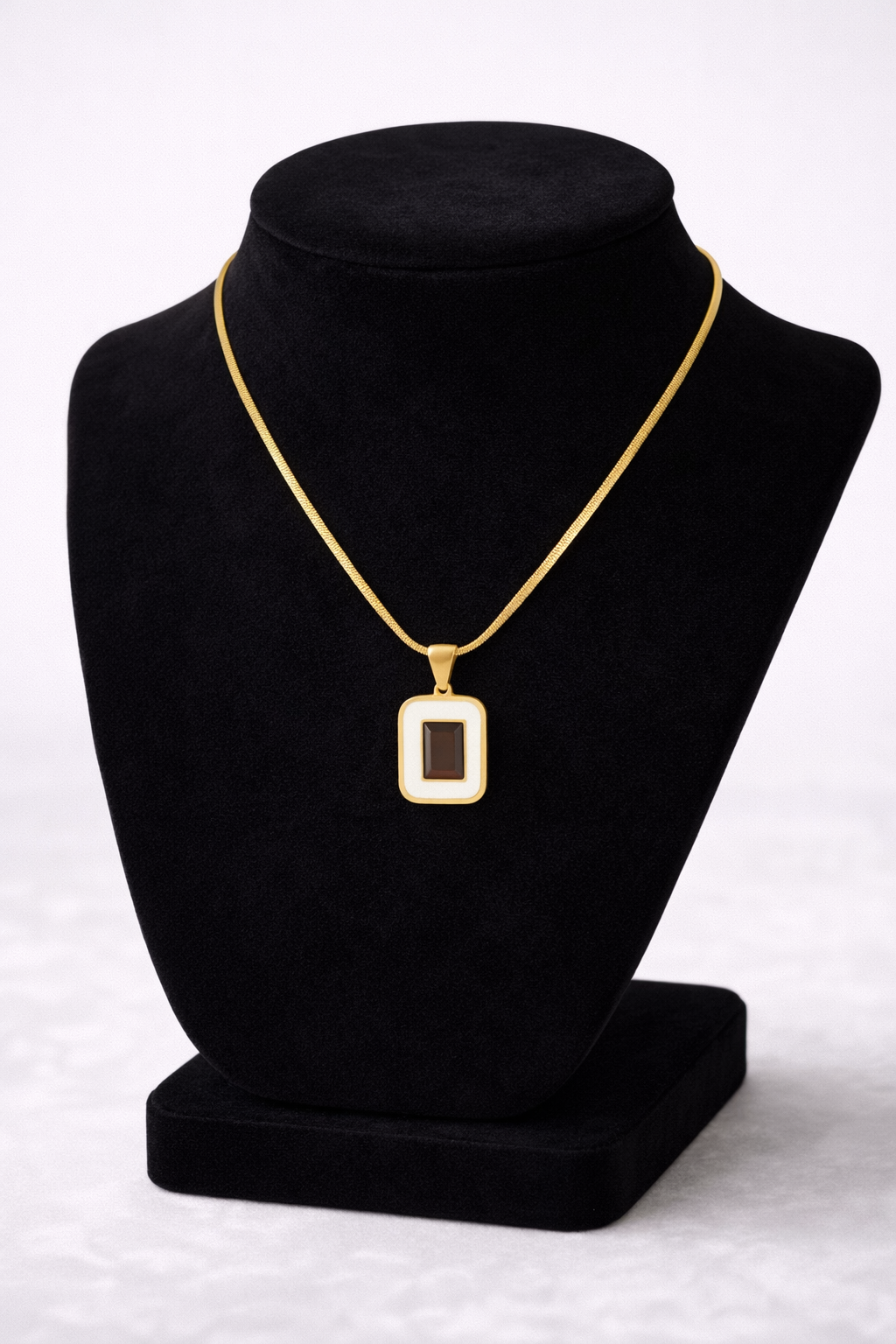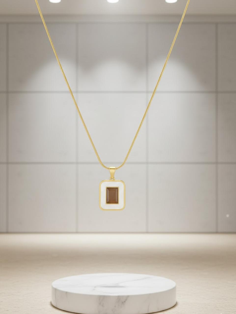 A modern and elegant square stone necklace designed to add a refined touch to your look. Featuring a sleek square pendant with a polished stone detail, this necklace offers a clean and timeless style that suits both everyday wear and special occasions.