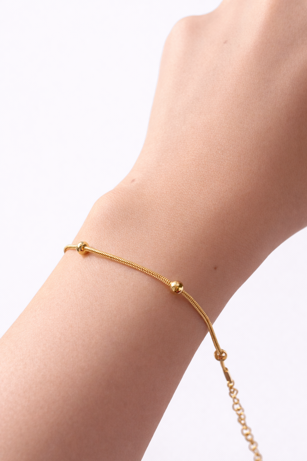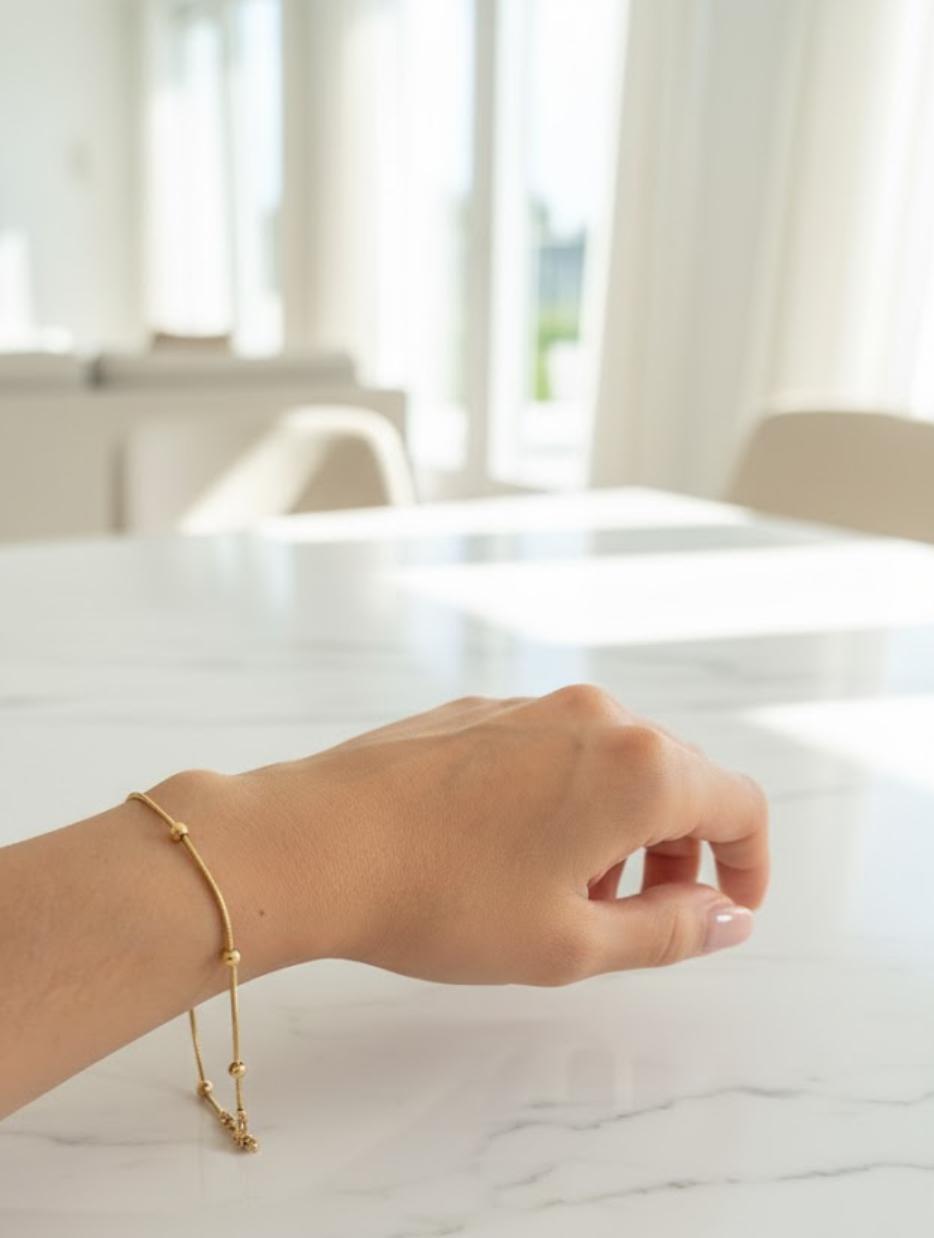 A delicate and timeless beaded gold bracelet designed with a minimalist aesthetic. Featuring evenly spaced beads on a fine chain, this piece adds a subtle elegance that complements both casual and refined looks.