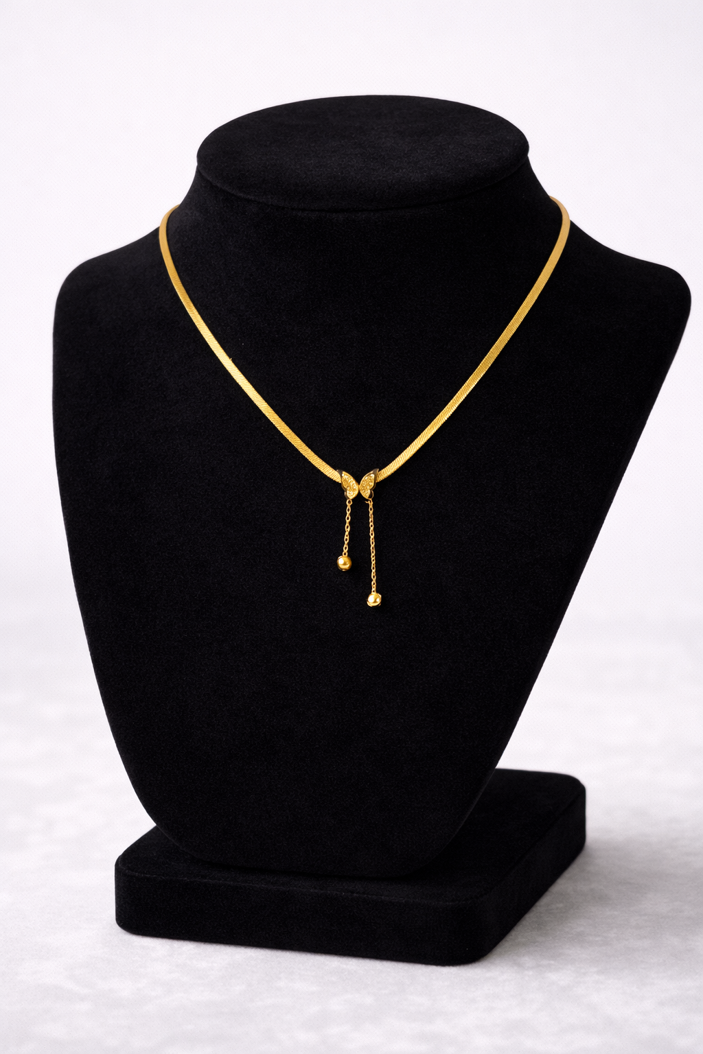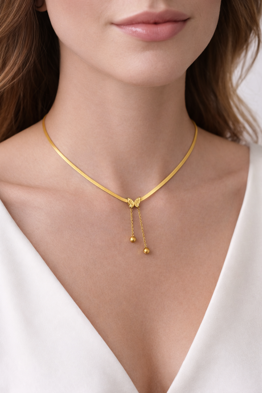 An elegant necklace featuring a delicate butterfly design that adds a soft, classy touch to any look. Made from high-quality stainless steel, this piece is designed to last while keeping its shine.